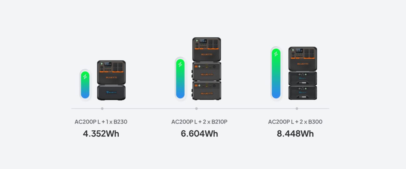 Der AC200PL ist perfekt kompatibel mit den Erweiterungsbatterien B210P, B230 und B300. So können Sie die Kapazität auf unglaubliche 8.448 Wh anpassen. Das volle Potenzial von unbegrenzter Energie auszuschöpfen, war noch nie so einfach.